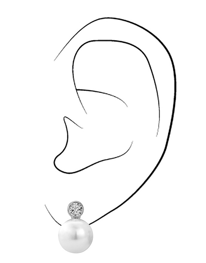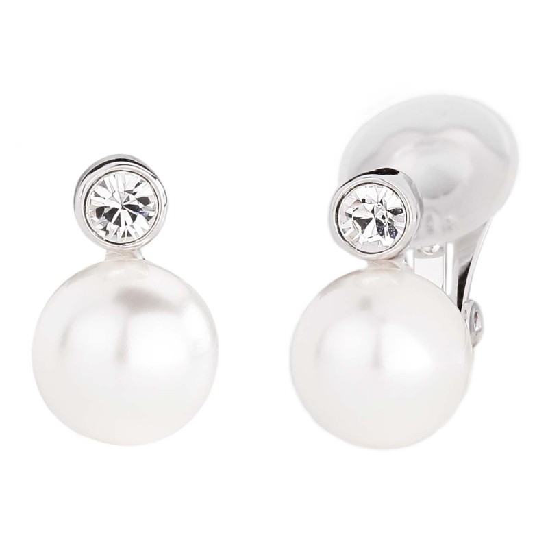Traveller Clip-on Earrings - Pearls - 10 mm - White - Preciosa Crystals - Platinum plated - 15x10 mm
