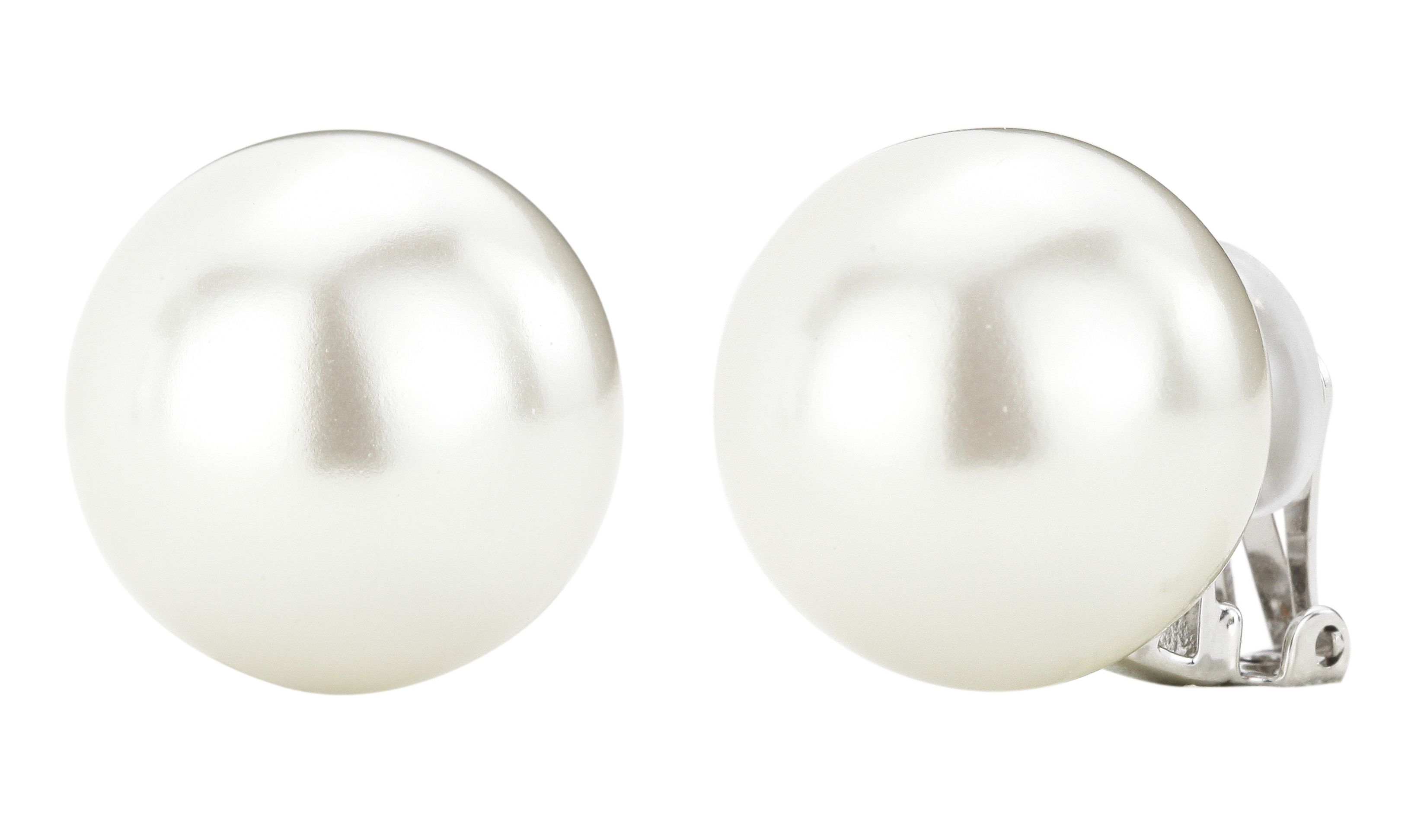 Traveller Clip-on Earrings - Pearls - 20 mm - White - Platinum plated - Silver-coloured