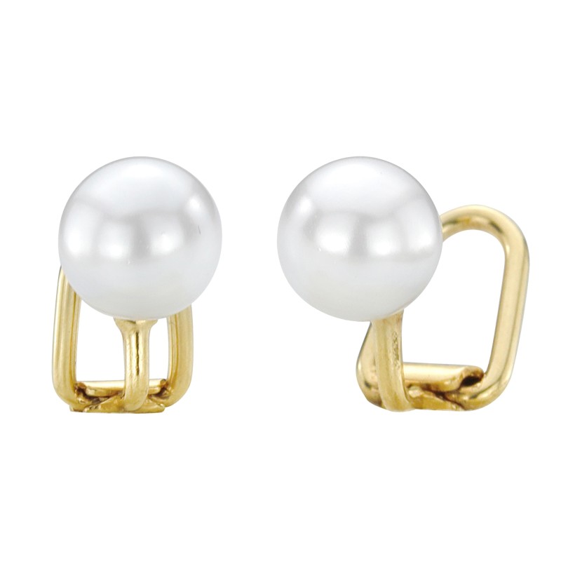 Traveller Clip-on Earrings - Pearls - 8 mm - White - 22ct Gold Plated