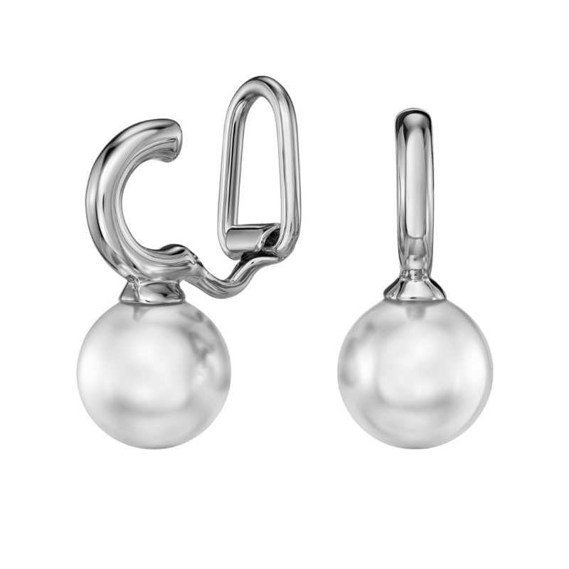 Traveller Clip-on Earrings - Pendants - Silver Coloured - Pearl - 10 mm - White - Platinum Plated - 20x10 mm