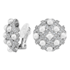 These majestic clip-on earrings are the crowning glory of any outfit. The platinum plated Traveller earrings feature an artistic design: a round shape with a diamond pattern. A high-quality imitation pearl from Mallorca—an island known for its pearls—takes center stage in this design. The 9 sparkling white pearls are set in a diamond pattern, surrounded by sparkling Preciosa crystals. The clip-on earrings measure approximately 20 x 20 millimeters and weigh 3 grams each. Thanks to Traveller's unique closure system, our clip-on earrings are very comfortable, lightweight, and safe to wear.