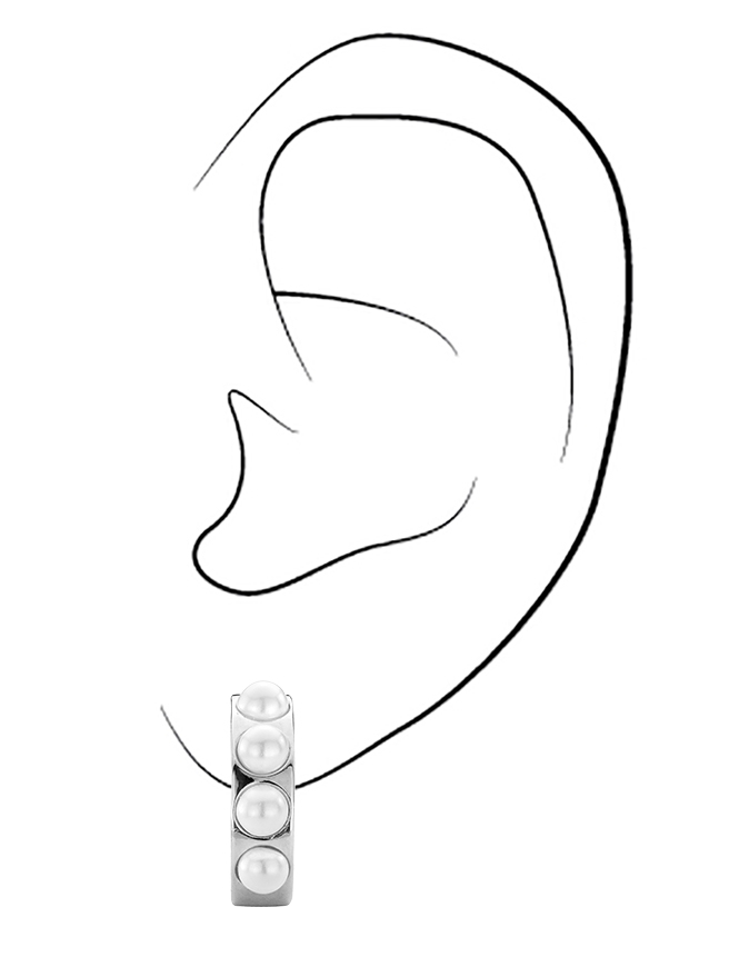 Elegant pearls in a sleek design form these cheerful clip-on earrings. These earrings from Traveller feature a row of high-quality imitation pearls from Mallorca, an island known for its pearls. The earrings measure 17 x 5 millimetres and weigh 2.5 grams each. The earrings are plated with platinum (core material: metal). Thanks to Traveller's unique fastening system, our clip-on earrings are very comfortable, light and safe to wear.
