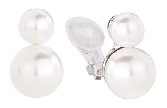 These double pearl clip-on earrings from Traveller are unique and chic. The high-quality imitation pearls are 8 and 12 millimetres in diameter and come from Mallorca - an island known for its pearls. The platinum plated earrings measure a total of 20 x 12 millimetres and weigh 5 grams each. Thanks to Traveller's unique fastening system, the clip-on earrings are very comfortable, stable and safe to wear.