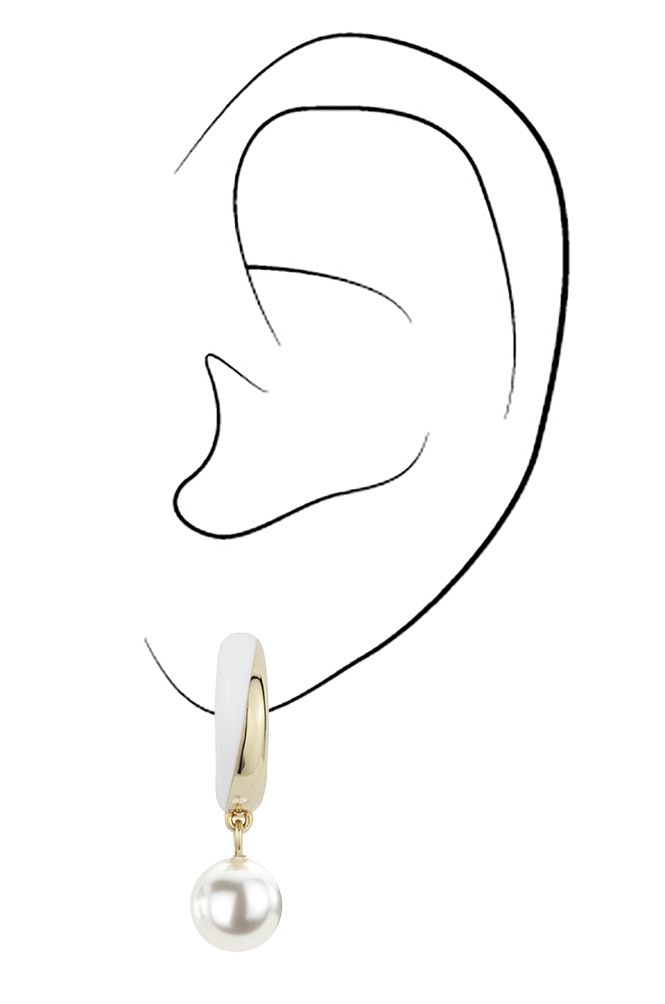 Traveller Drop Clip Earrings - Gold Plated - PEarls - 8mm - White - White Enamel - 27x8 mm