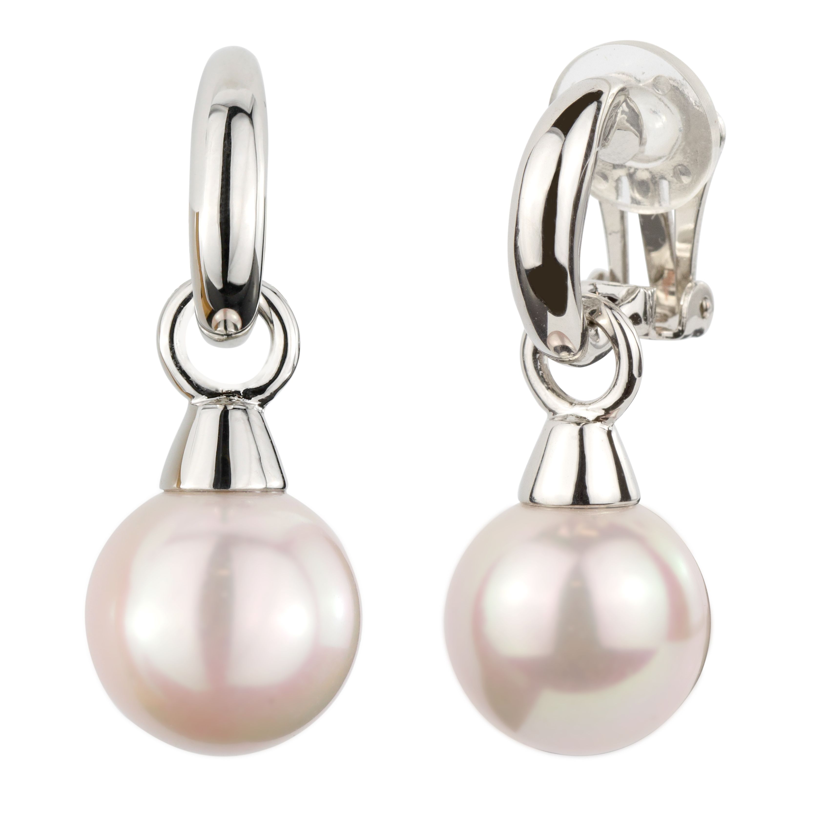 Traveller Drop Clip Earrings - Silver Coloured- Pearls - 14mm - Rose - Platinum Plated - 35x15mm