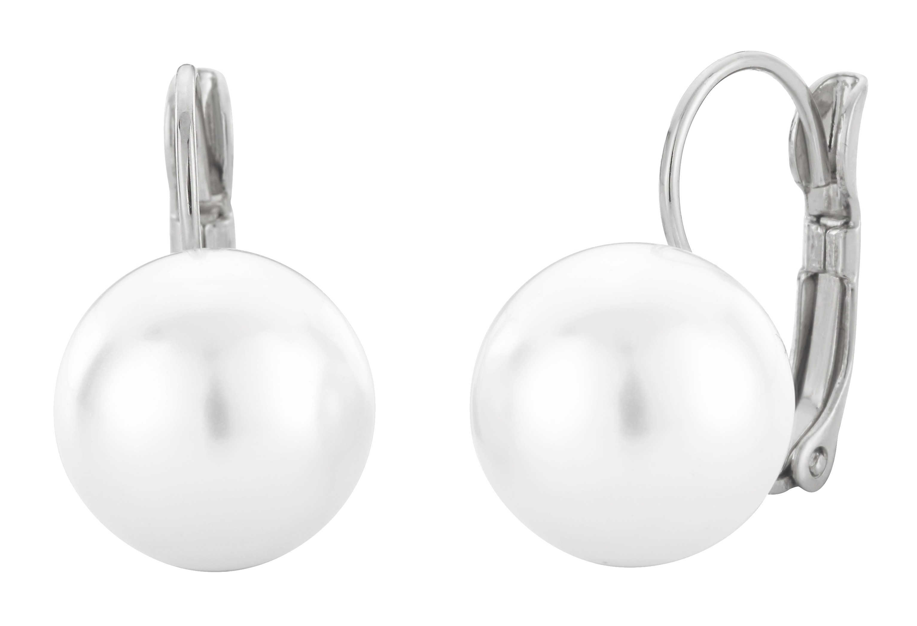 Traveller Drop Earrings - Brisures - Silver coloured - Pearls - 12 mm - White - Platinum Plated