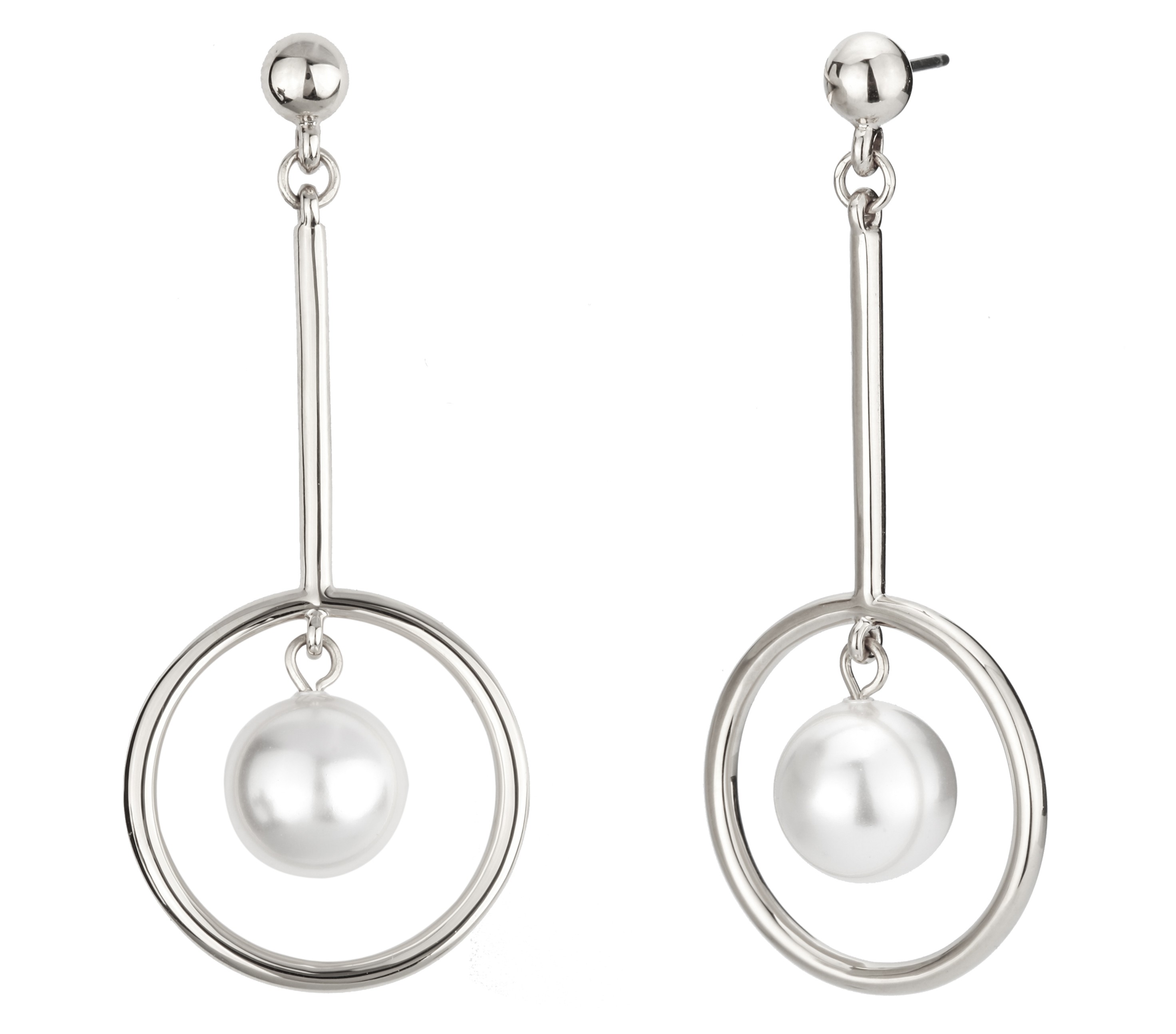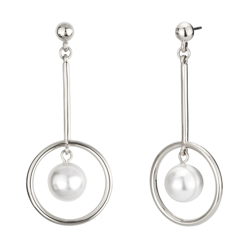 Traveller Drop Earrings with Majorica pearls Platinum plated