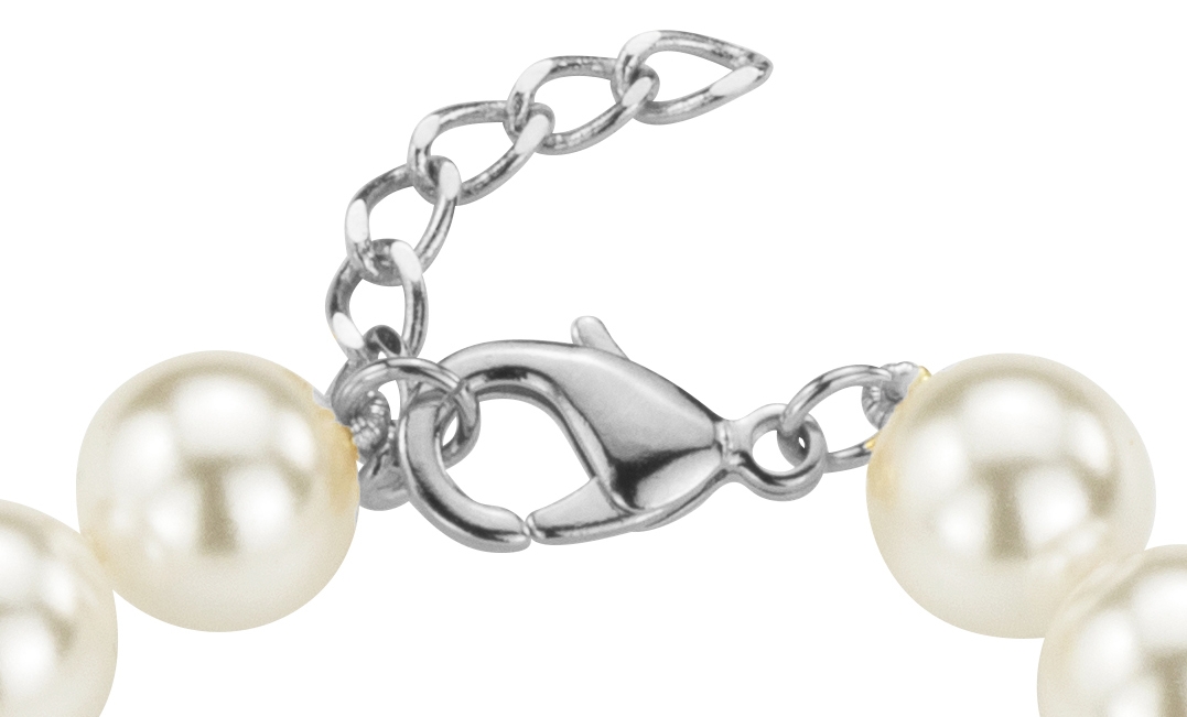 Traveller Pearl Bracelet - Pearls - White - 10 mm - Silver Coloured - Platinum Plated - 18+3cm