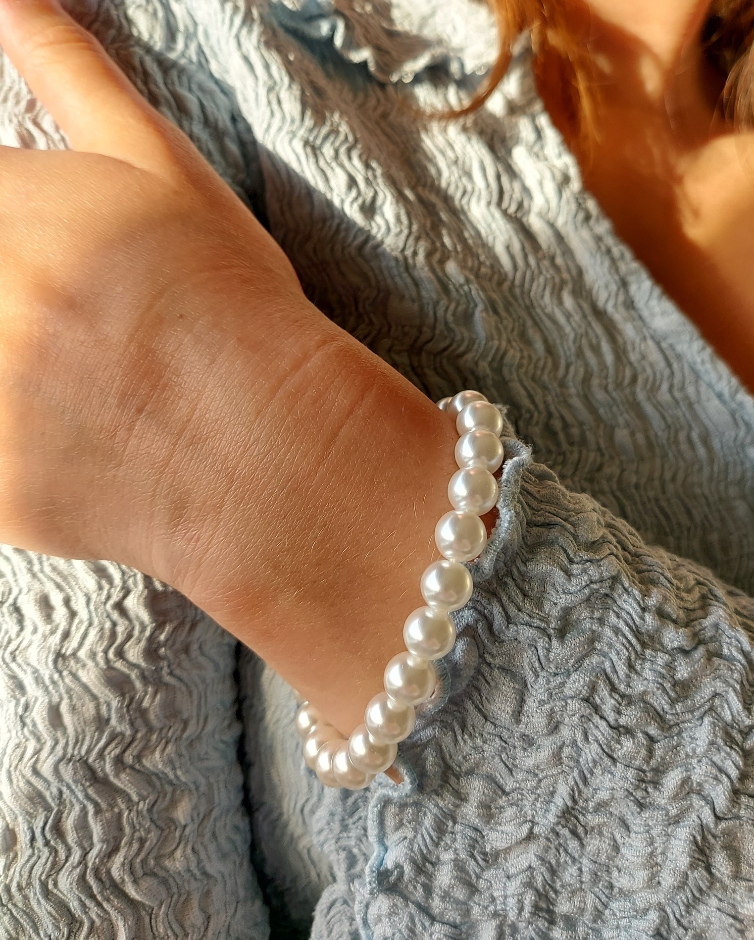 Traveller Pearl Bracelet - Pearls - White - 8 mm - Silver Coloured - Platinum Plated -18+3 cm