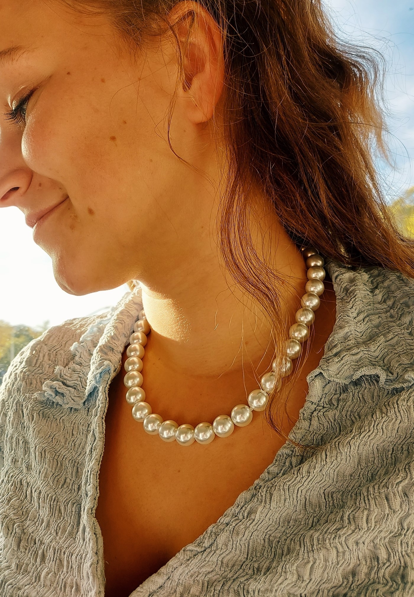 The classic pearl necklace stands for class and elegance and has now made a comeback. This pearl necklace from Traveller features high-quality imitation pearls from Mallorca – an island known for its pearls. The pearls in this necklace have a diameter of 12 millimetres. The platinum plated necklace has a length of 45 centimetres. The necklace is packaged in gift packaging made from environmentally certified material. Complete the look with the matching bracelet!