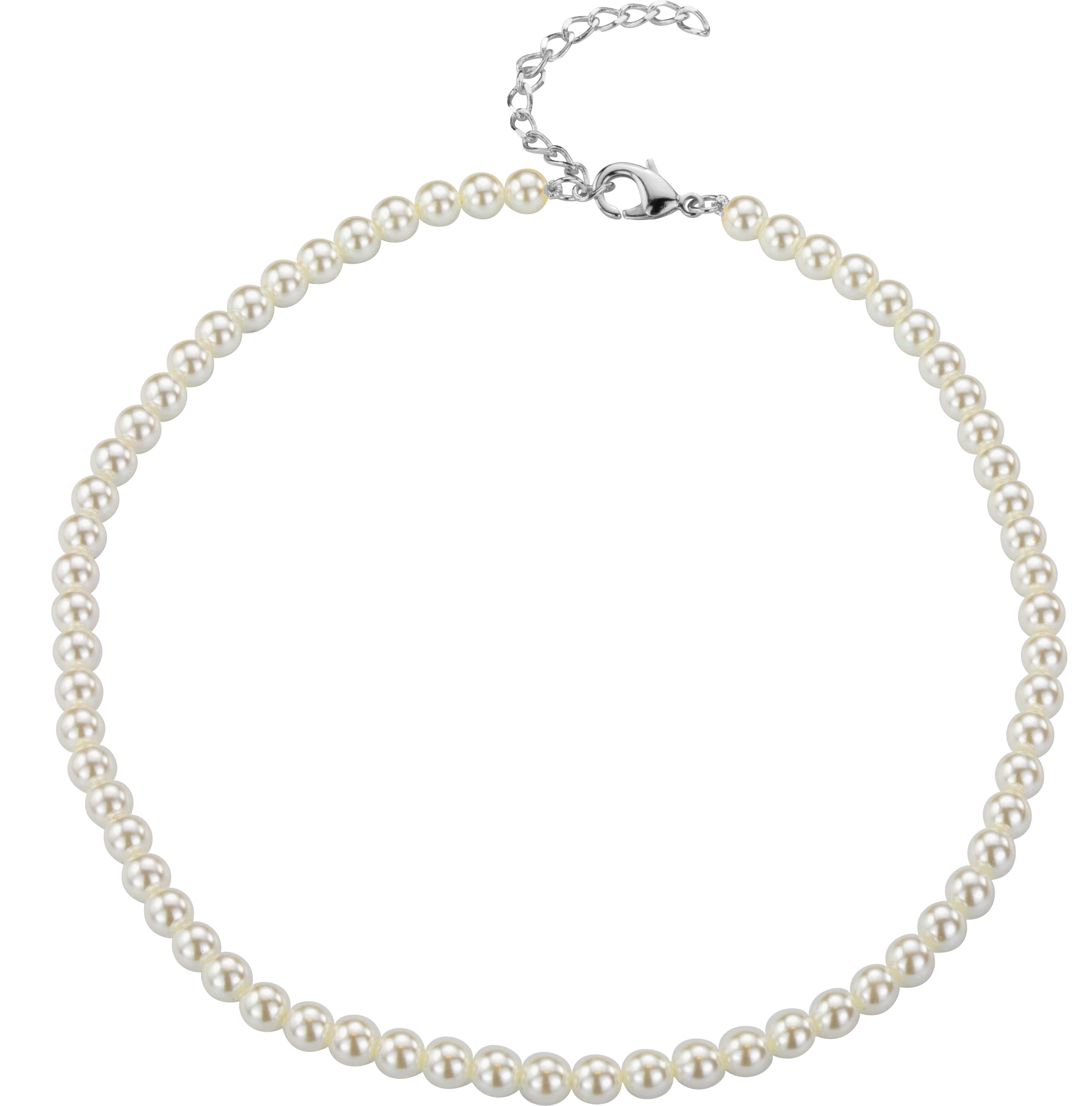 Traveller Pearl Necklace - White - 6 mm - 40-45 cm - Silver Coloured - Platinum Plated