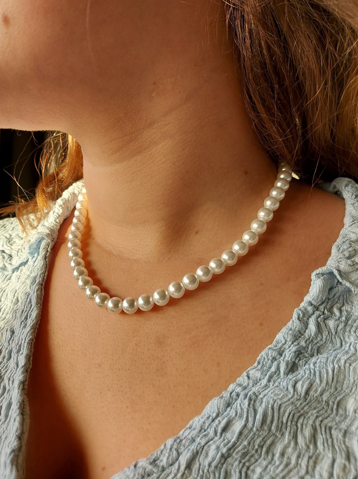 The classic pearl necklace is synonymous with class and elegance and has now made a comeback. This pearl necklace from Traveller features high-quality imitation pearls from Mallorca, an island renowned for its pearls. The pearls in this necklace have a diameter of 8 millimetres. The platinum plated necklace has a length of 45 centimetres. The necklace is packaged in gift packaging made from environmentally certified material.