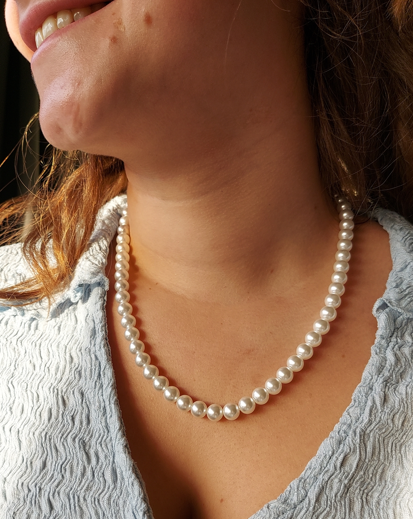Traveller Pearl-Necklace - White - 8 mm - 50 cm - Platinum Plated