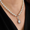 Traveller Pearl Necklace with Pendant - Pearls - 10 mm - White - Crystal - Oval - 45 cm - Platinum Plated