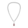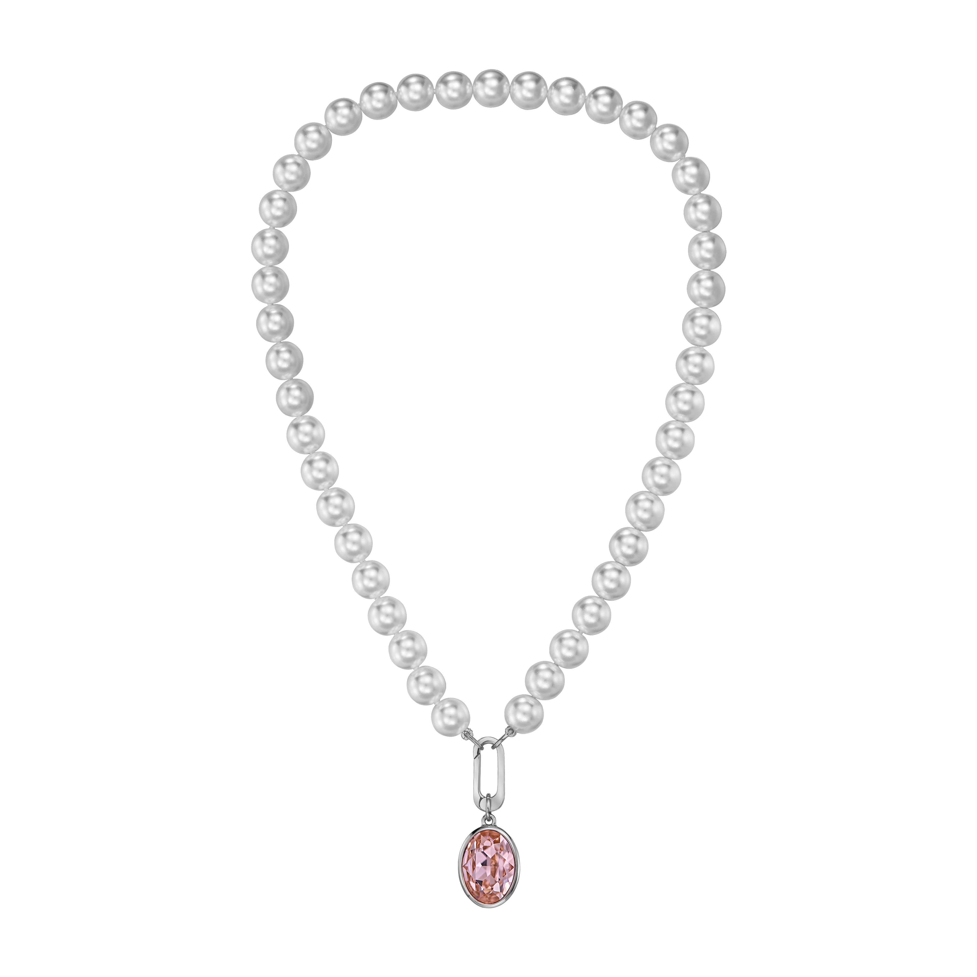 Traveller Pearl Necklace with Pendant - Pearls - 10mm - White - Crystal - Pink - Oval - 45cm - Plated