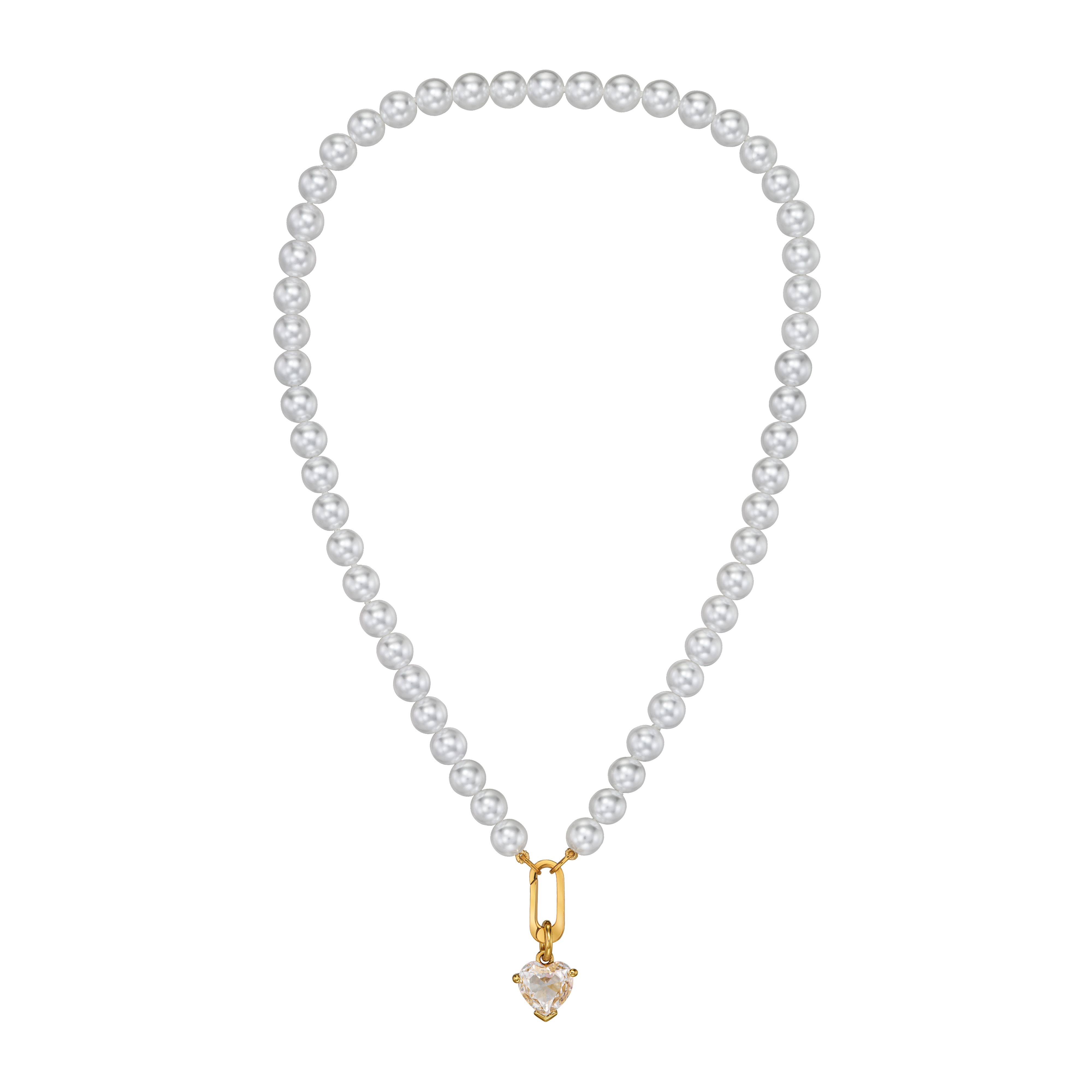 Traveller Pearl Necklace with Pendant - Pearls - 8 mm - White - Crystal - 12 mm - Heart - 45 cm - 22ct Gold Plated