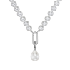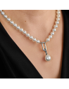 Traveller Pearl Necklace with Pendant - Pearls - 8 mm - White - Pearl - 12x14 mm - Oval - 45 cm - Platinum Plated