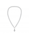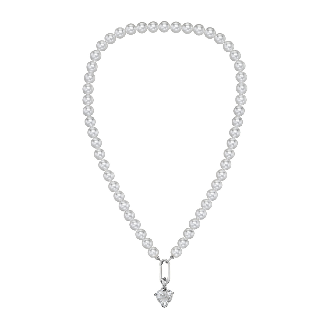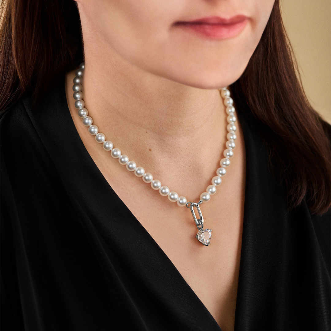 Traveller Pearl Necklace with Pendant - Pearls - 8mm - White - Crystal - 12 mm - Heart - 45cm - Platinum Plated