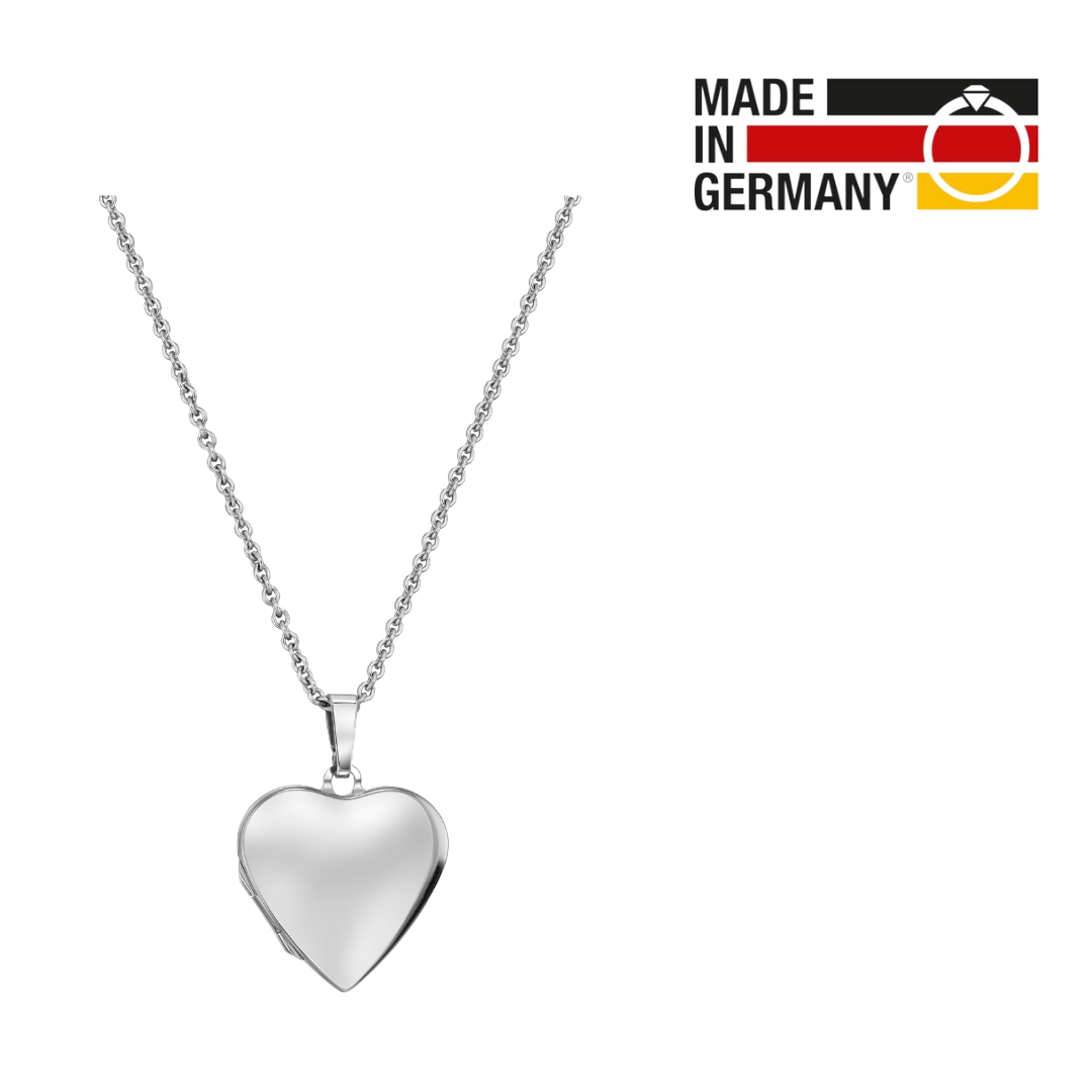 Traveller Photo locket with chain - Sterling Silver- Made in Germany - Shiny - Heart - Sustainable - 20x20 mm - 45 cm