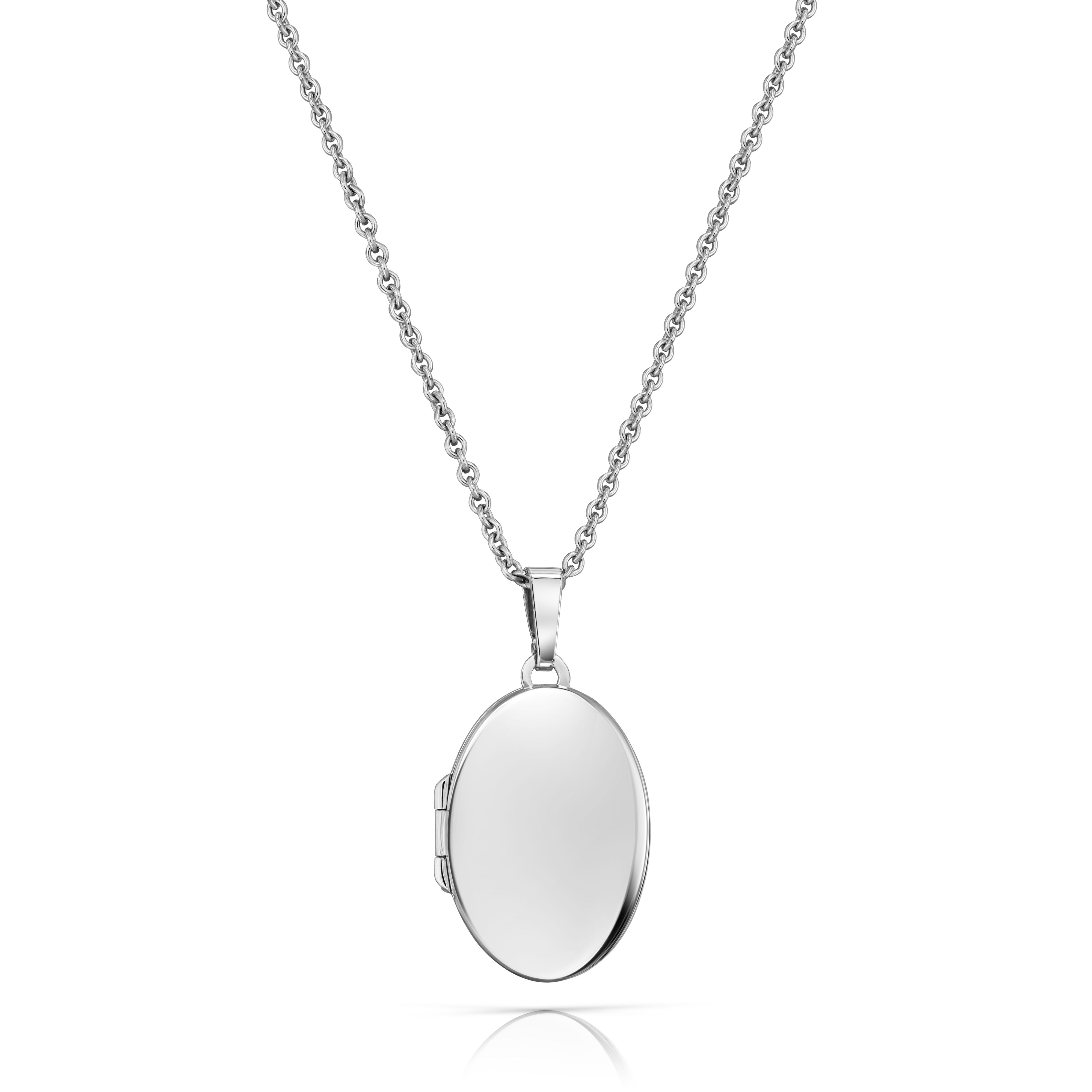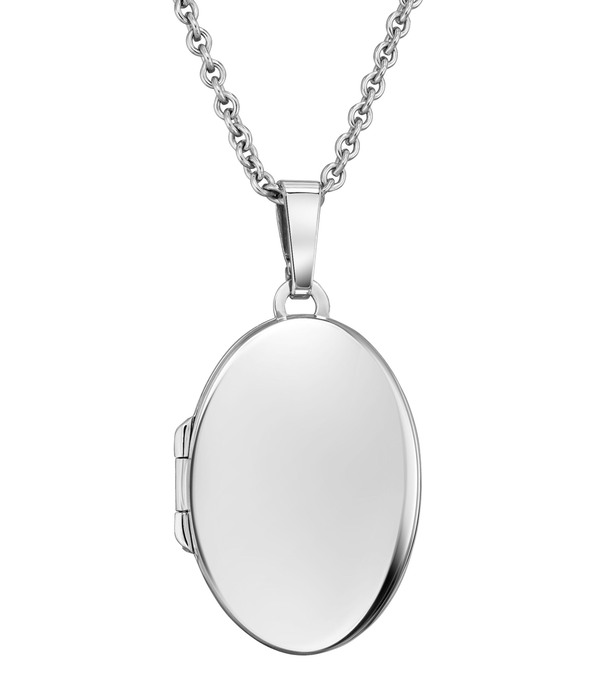 Beautiful timeless silver medallion from Traveller's Made in Germany line. With this elegant shiny oval medallion, you can always keep your favourite photo close by. The locket measures 16 x 23 millimetres and hangs on a 45-centimetre-long chain. The front of the locket has a shiny finish and the back has a matte finish. The locket comes with a template so you can easily cut your favourite photo to the right shape.