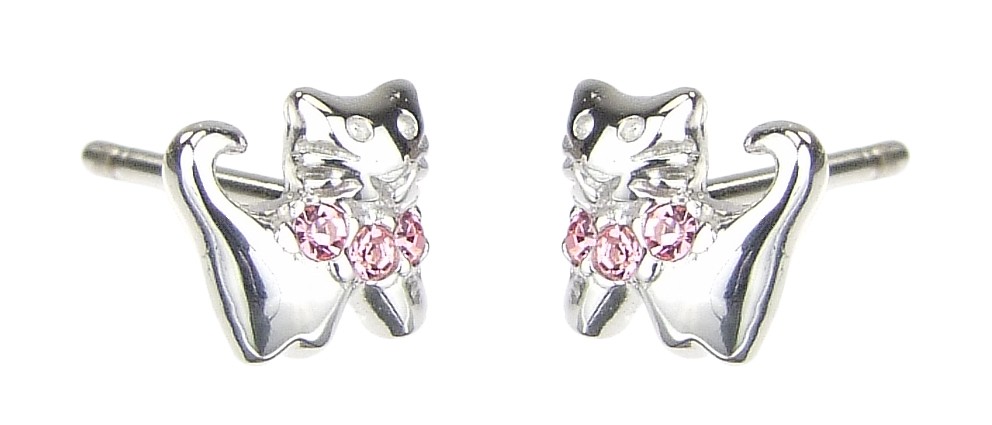 Traveller Children's Earrings - Cat Feles - Earring Girl - Sterling Silver - Crystals - Light Pink