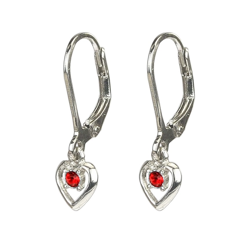 Traveller Drop Earrings - Children - Heart Dushi - Sterling Silver 925 - Crystals - Red