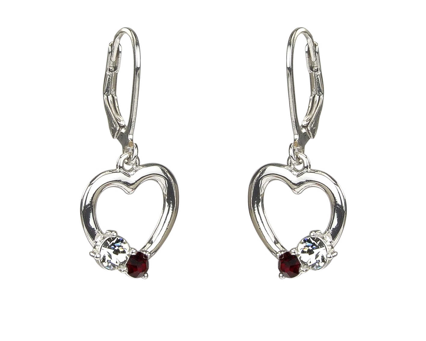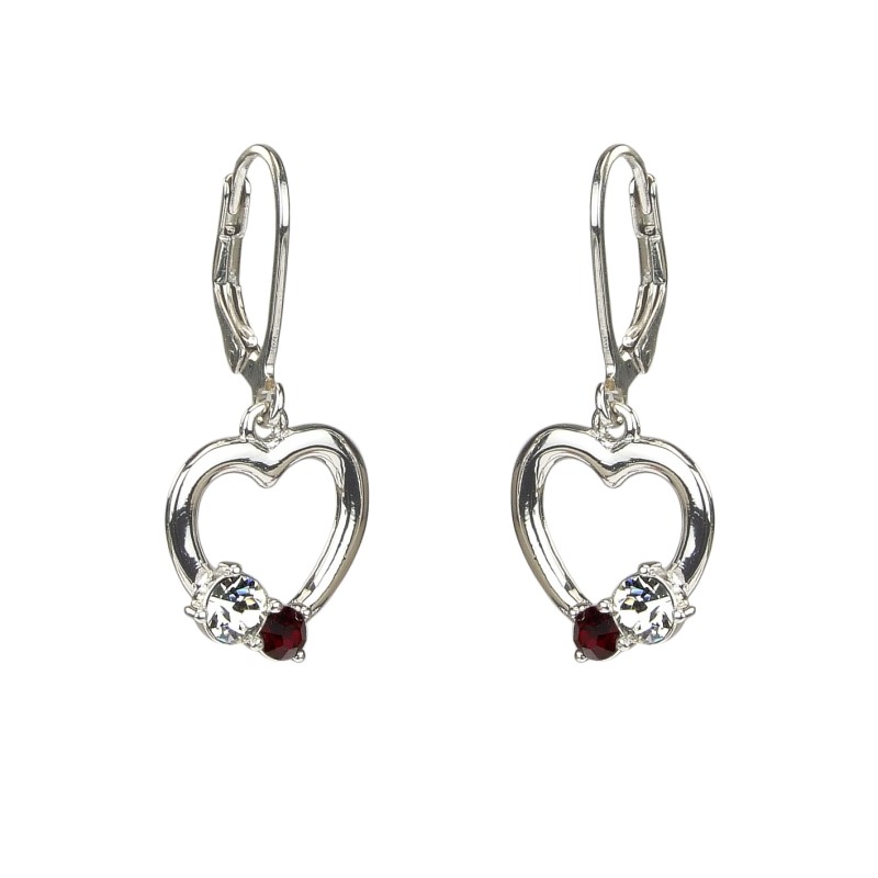 Traveller Drop Earrings - Heart Cara - Children - Sterling Silver - Crystal - Red/ White