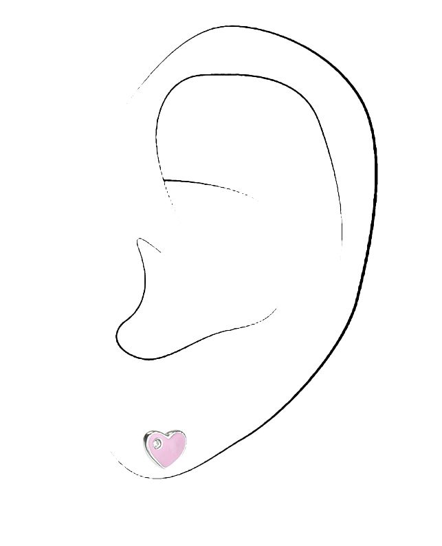 Traveller Earrings - Heart Chou - Children - Sterling Silver - Pink - Crystal