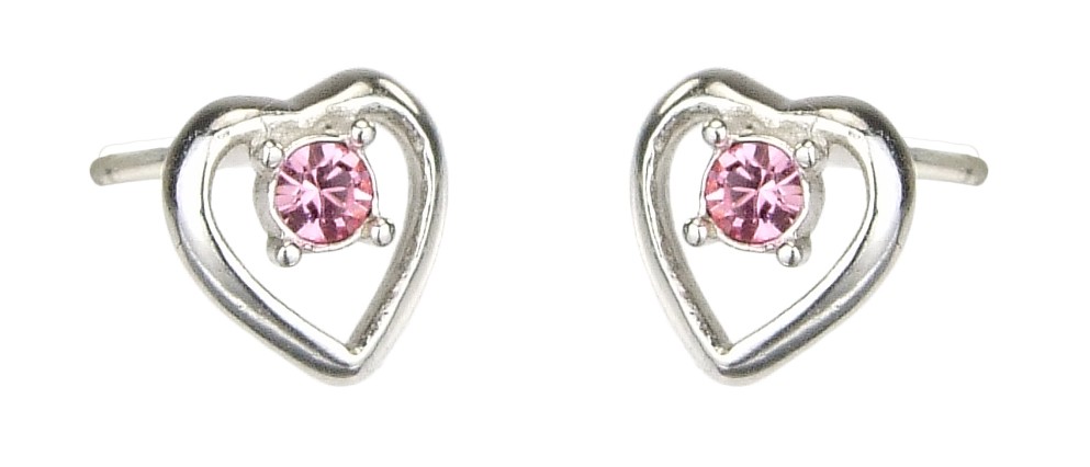 Traveller Earrings - Heart Dushi - Children Sterling Silver - Crystals - Pink