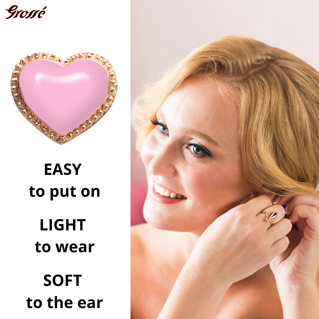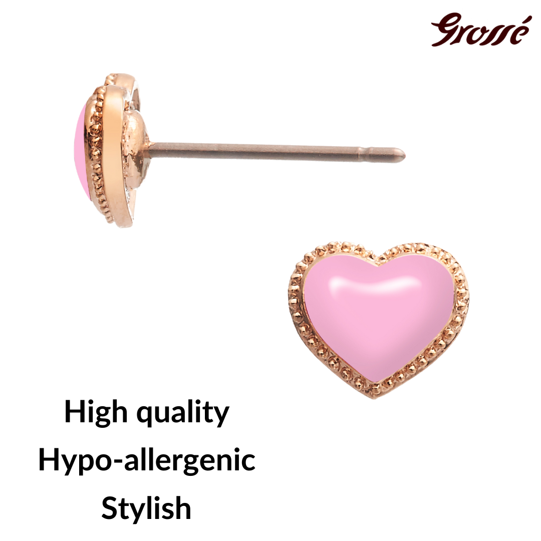 Grossé Earrings - Pop Heart - Gold Coloured - Enamel - Pink - Gold Plated - Ø 7 mm - GA61746