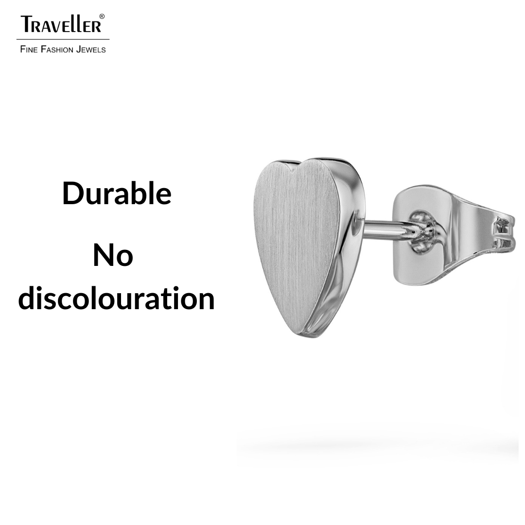 Traveller Earrings - Silver Coloured - Heart - Stainless Steel - 9 x 9 mm - 166338