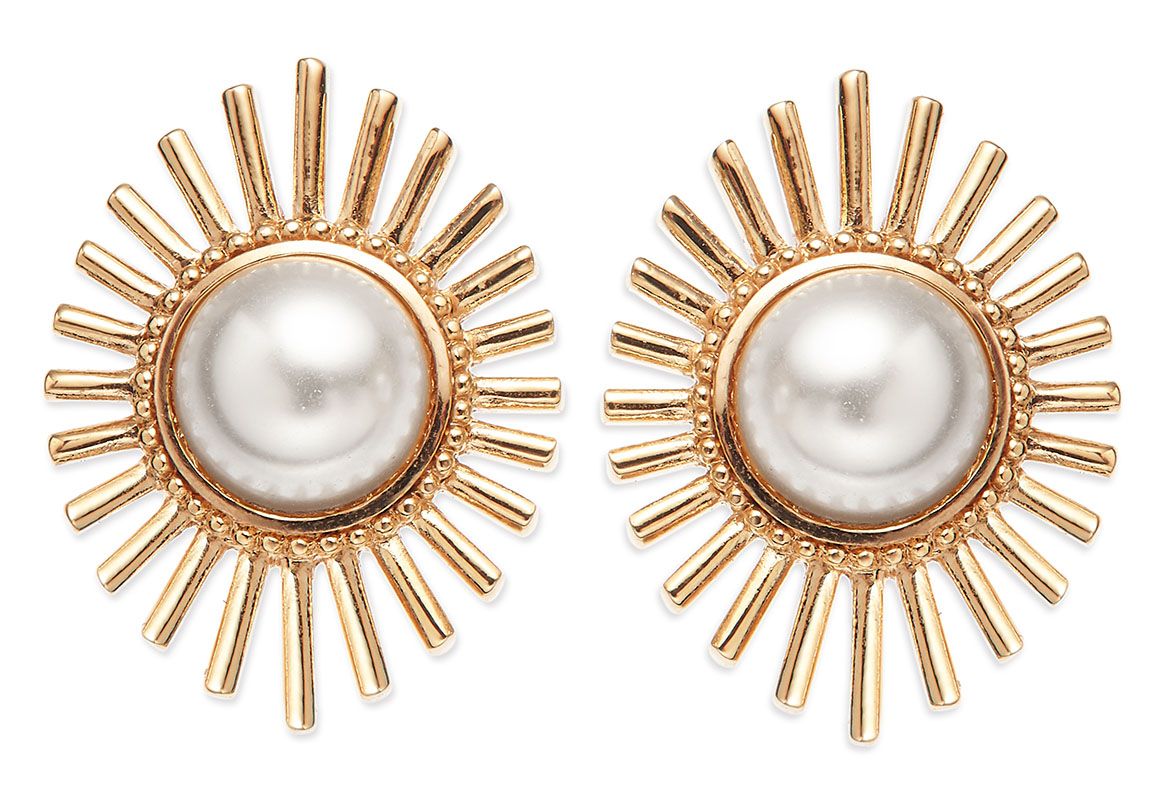 Grossé's Future Floral line is a radiant jewellery line with a shiny pearl at its heart. These earrings are in the shape of futuristic flower with petals shaped like sunbeams. The earrings are fully gold plated 22 carat gold, measure 2.5 by 2 centimetres and weigh 3.5 grams each.