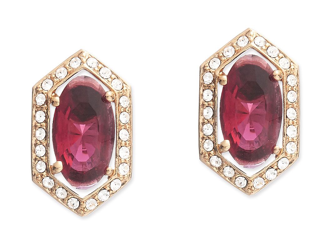 Grossé Earrings - Jelly Beans - Gold Coloured - Crystal - Red - Gold Plated - 15x9 mm