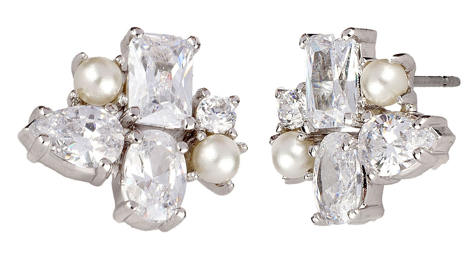 Sparkling Mess by Osira: A pair of earrings that is stylish but also playful! The zirconia stones and pearls are playfully combined, giving the earring a unique and chic effect. These special earrings are platinum plated (silver coloured).