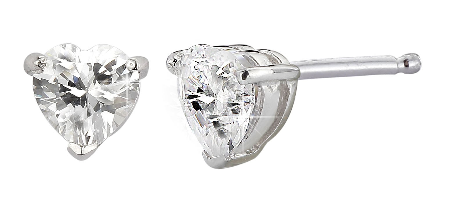 These pretty heart-shaped earrings are made of 925 sterling silver and are rhodium plated. They are set with a top quality (AAA) 7-millimetre zirconia stone in the shape of a heart.