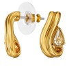 These Traveller earrings complement any outfit perfectly—casual, formal, or chic—it matches all! The stud earrings feature a shimmering gold coloured teardrop-shape with a radiant teardrop-shaped Preciosa crystal. Measuring 17 by 9 millimetres, the earrings are striking yet not overpowering, making it a beautiful piece for any occasion. The earrings are 22 carat gold plated and weighs 2 grams each. Complete the set with the matching pendant with necklace (157841).