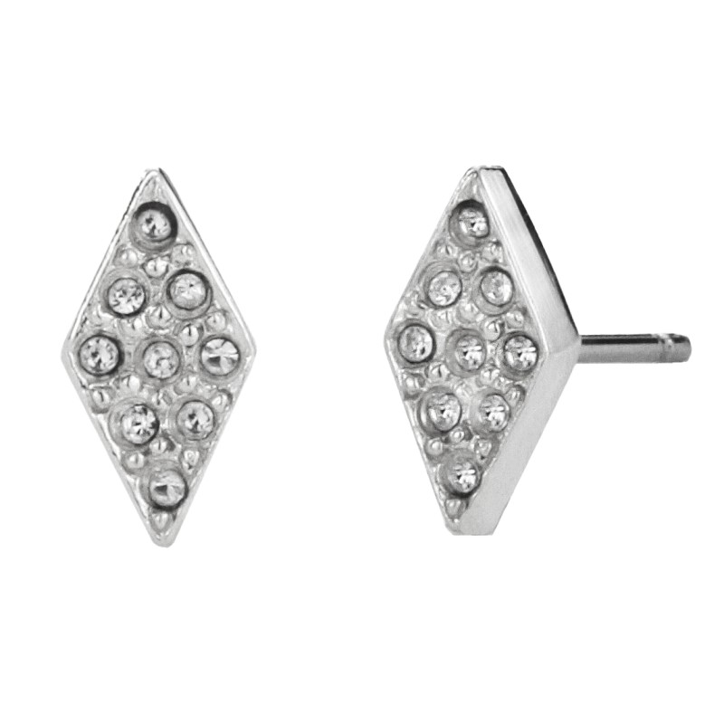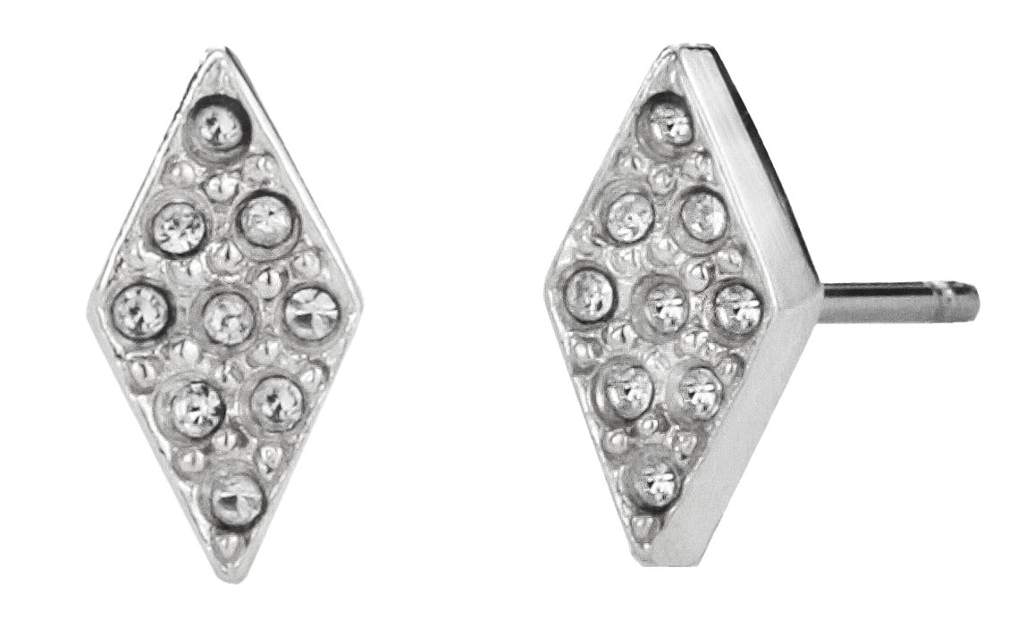 A little sparkling earring that makes everything more radiant. These Traveller diamond-shaped ear studs are studded with sparkling crystals by Preciosa. The earrings have a protective layer of Platinum and measure 9 x 5 millimetres. As the studs are made of anti-allergic titanium, anyone can (re)wear these earrings! These earrings are packaged in a gift box made of environmentally certified material.