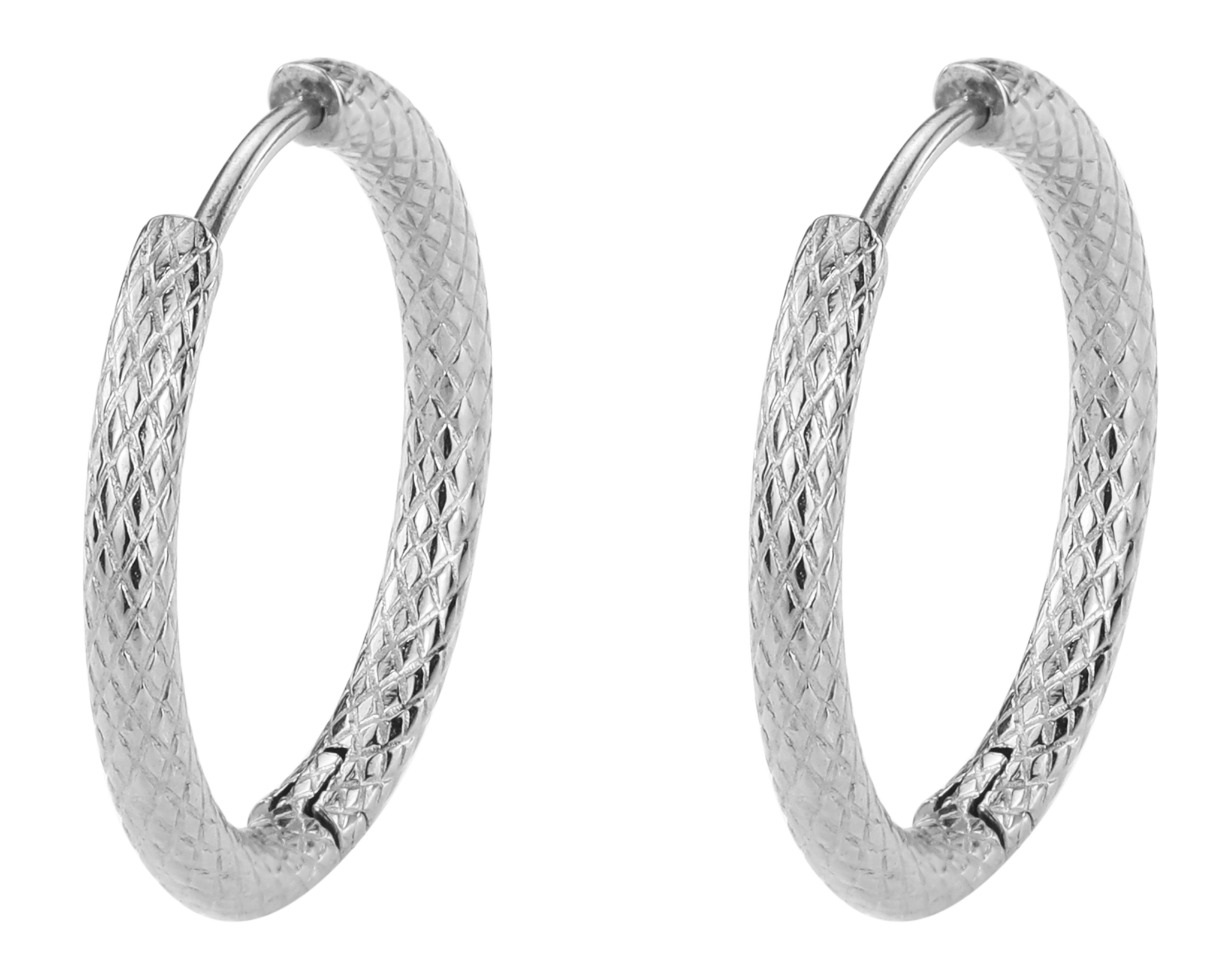 Traveller Hoop Earrings - Silver coloured - Stainless steel - 25 mm - Checkered Texture
