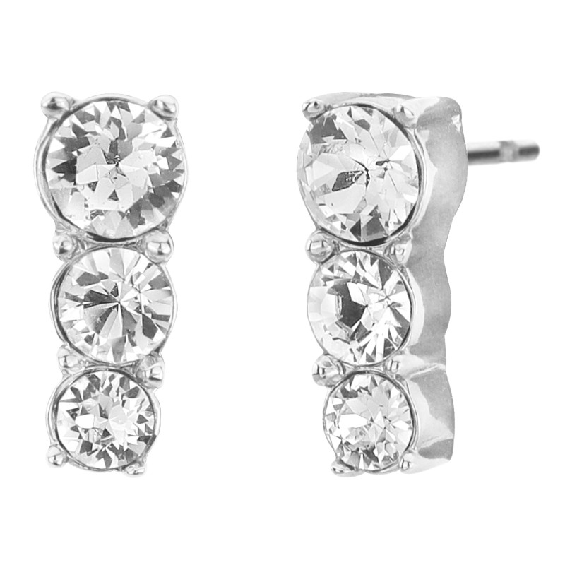 These elegant earrings from Traveller combine timeless elegance with a sparkling design. The platinum plated earrings (core material: metal) consist of three Preciosa crystals in different sizes. The earrings measure 10 x 5 millimetres in total and weigh 1 gram each. The studs are made of anti-allergic titanium. This means that everyone can wear these earrings!
