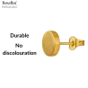 A pair of earrings from Traveller featuring a stylish, timeless design. These gold coloured matt stainless steel ear studs are in the shape of a circle. The earrings have a diameter of 8 millimetres and weigh only 0.85 grams each.