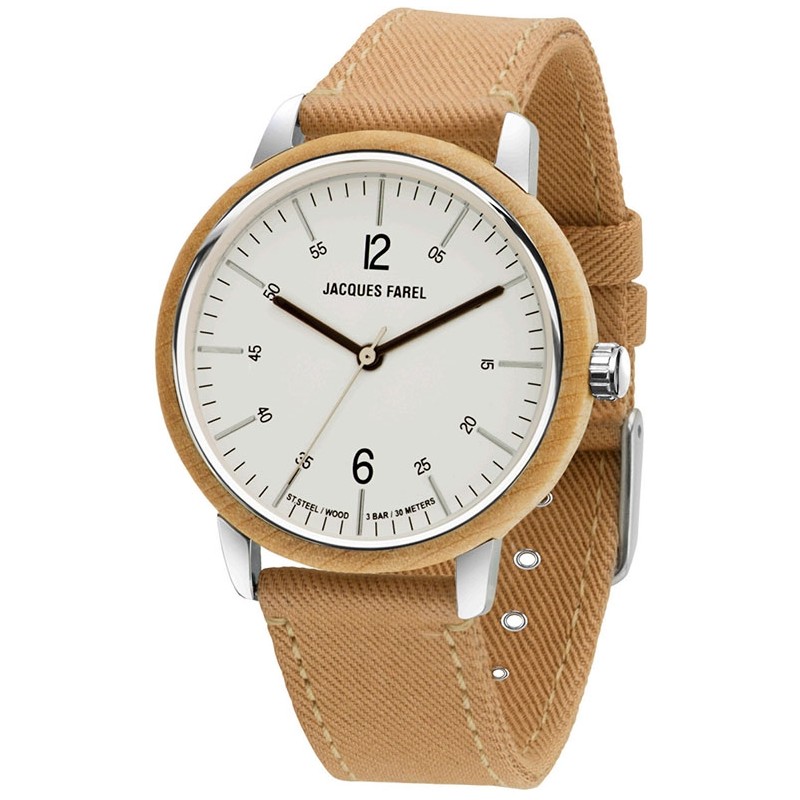 JACQUES FAREL hayfield is not a fast fashion accessory! The warm, smooth wood, the soft, flat and vegan lyocell fibres and the clear dial remind you to take a step back from the stress and hectic pace of everyday life. ‘It's time to experience again.’ To enjoy your JACQUES FAREL hayfield for a long time, it is important to protect the watch from water, moisture and extreme temperatures.