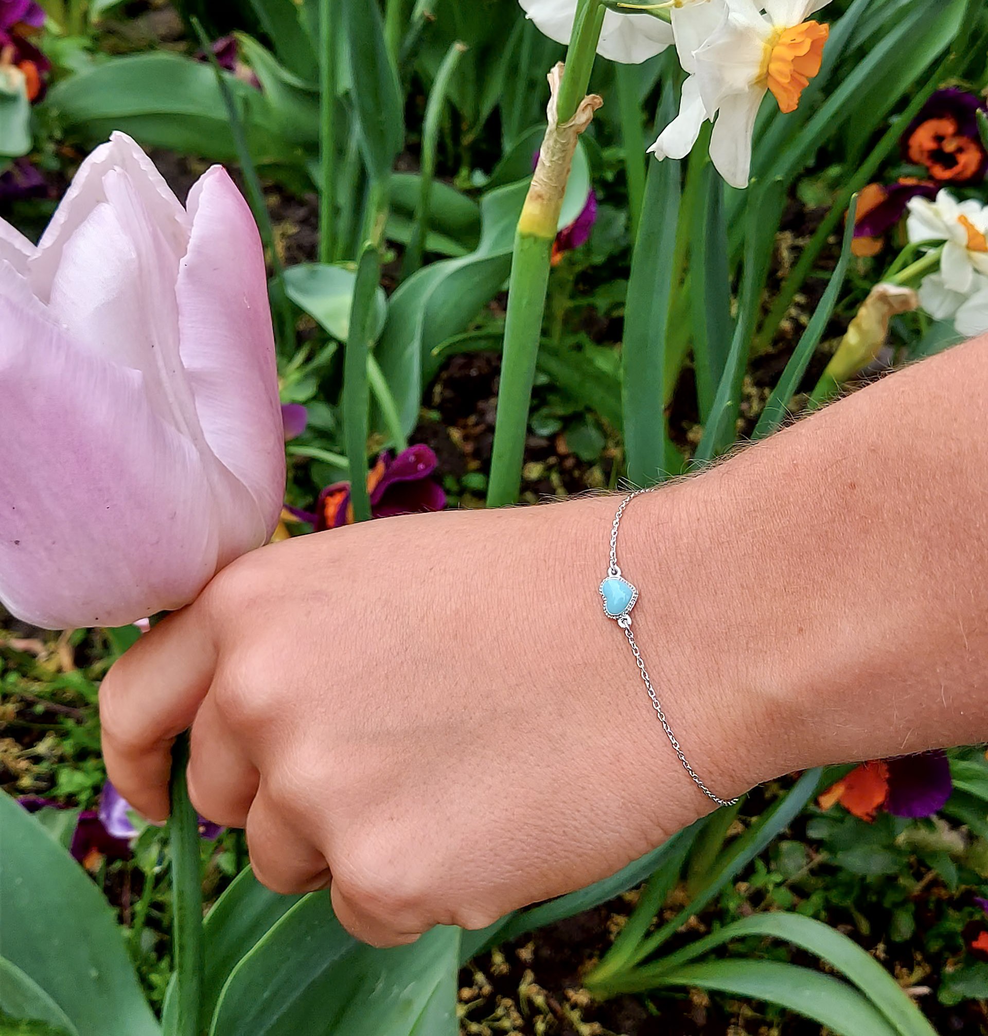 Grossé Bracelet - Pop Heart - Silver Coloured - Enamel Heart - Light Blue - Platinum Plated - 16+3 cm