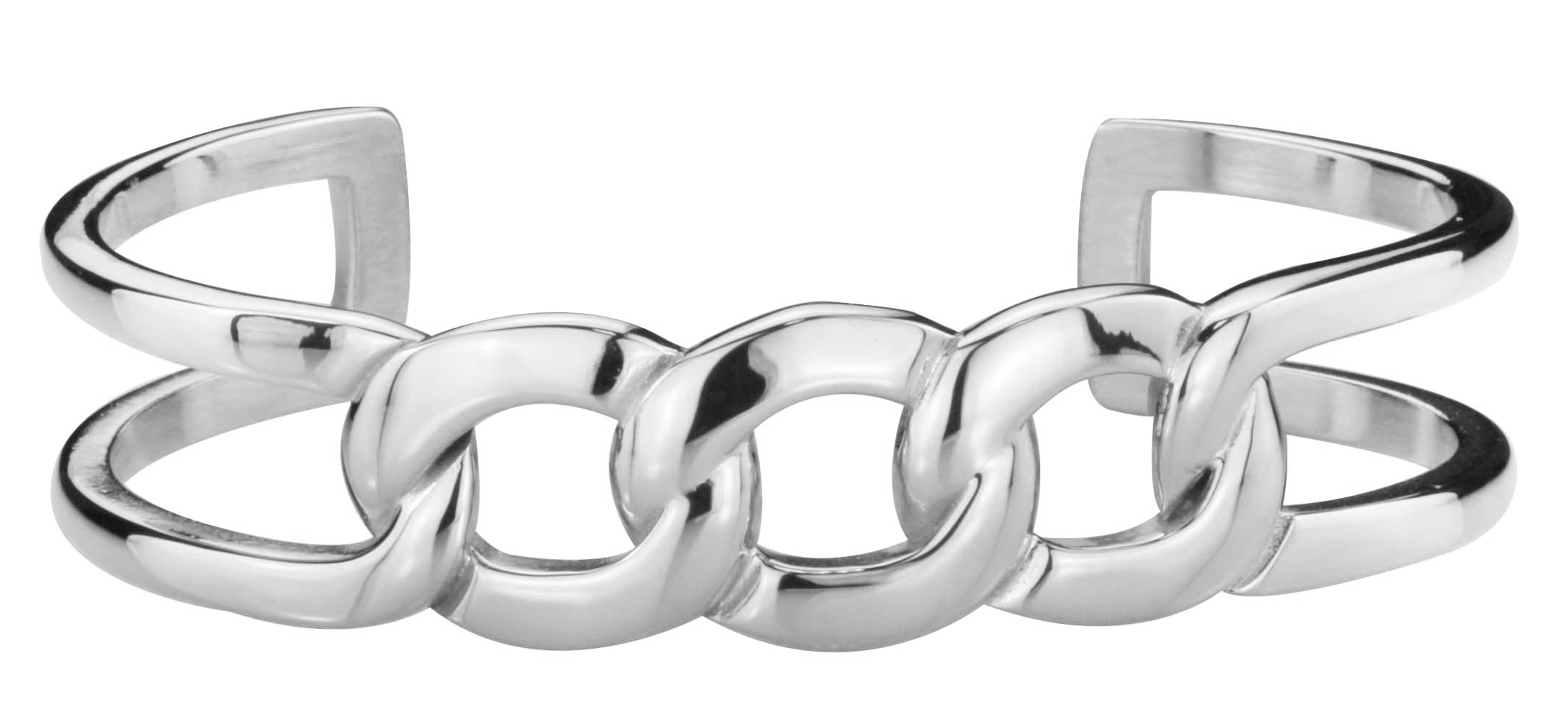 This striking bangle from Traveller is an elegant eye-catcher for any occasion. The silver coloured stainless steel bracelet has a diameter of 6 centimetres and is slightly flexible, so you can adjust it to fit your arm.