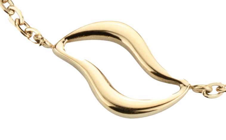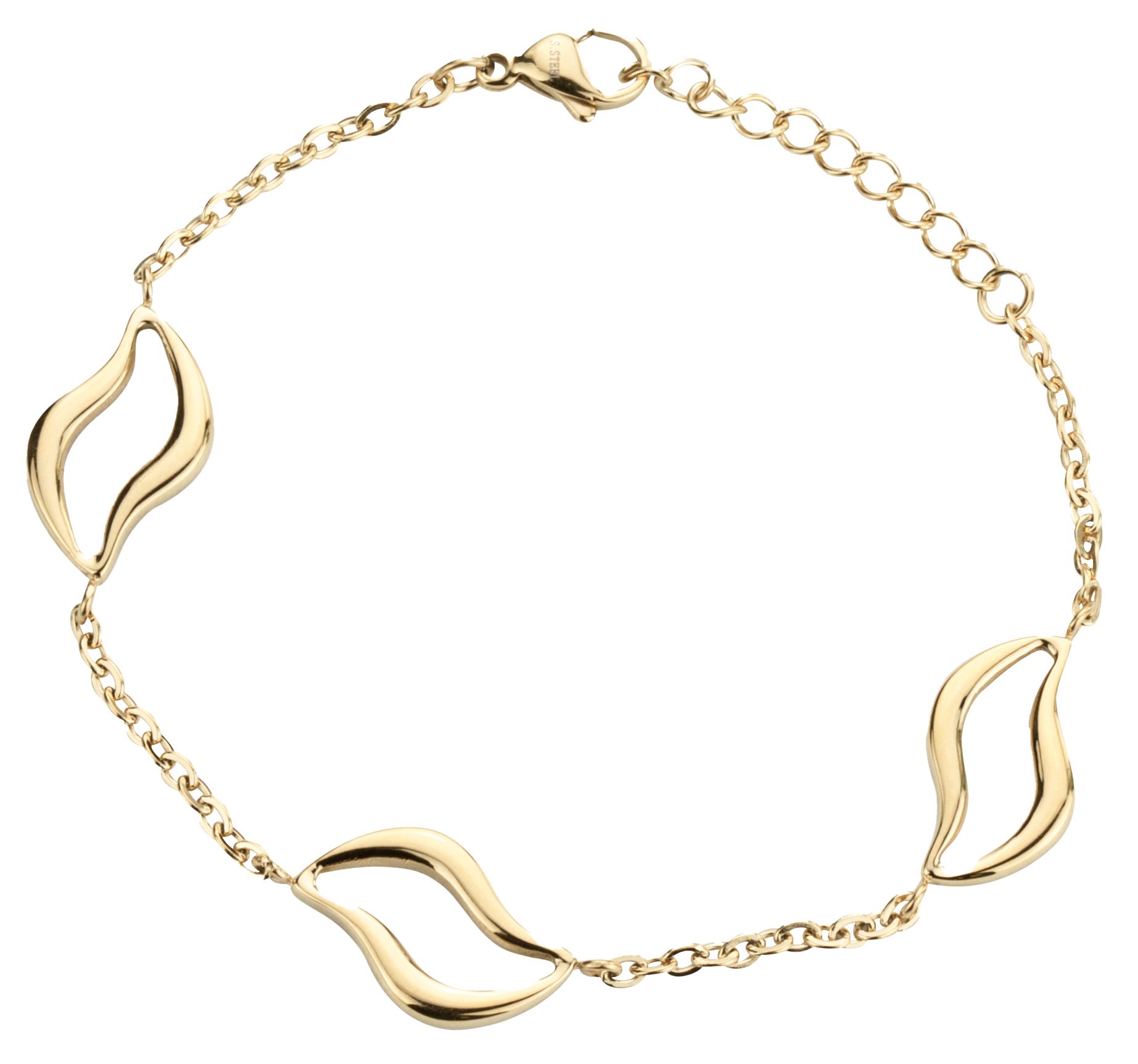 This bracelet by Traveller has an unique, artistic design. Chain and 3 abstract, waving forms alternate and give this bracelet its special look. The gold plated stainless steel bracelet has a length of 17 centimetres and has an extension piece of 3 centimetres giving this piece of jewellery a maximum length of 20 centimetres.