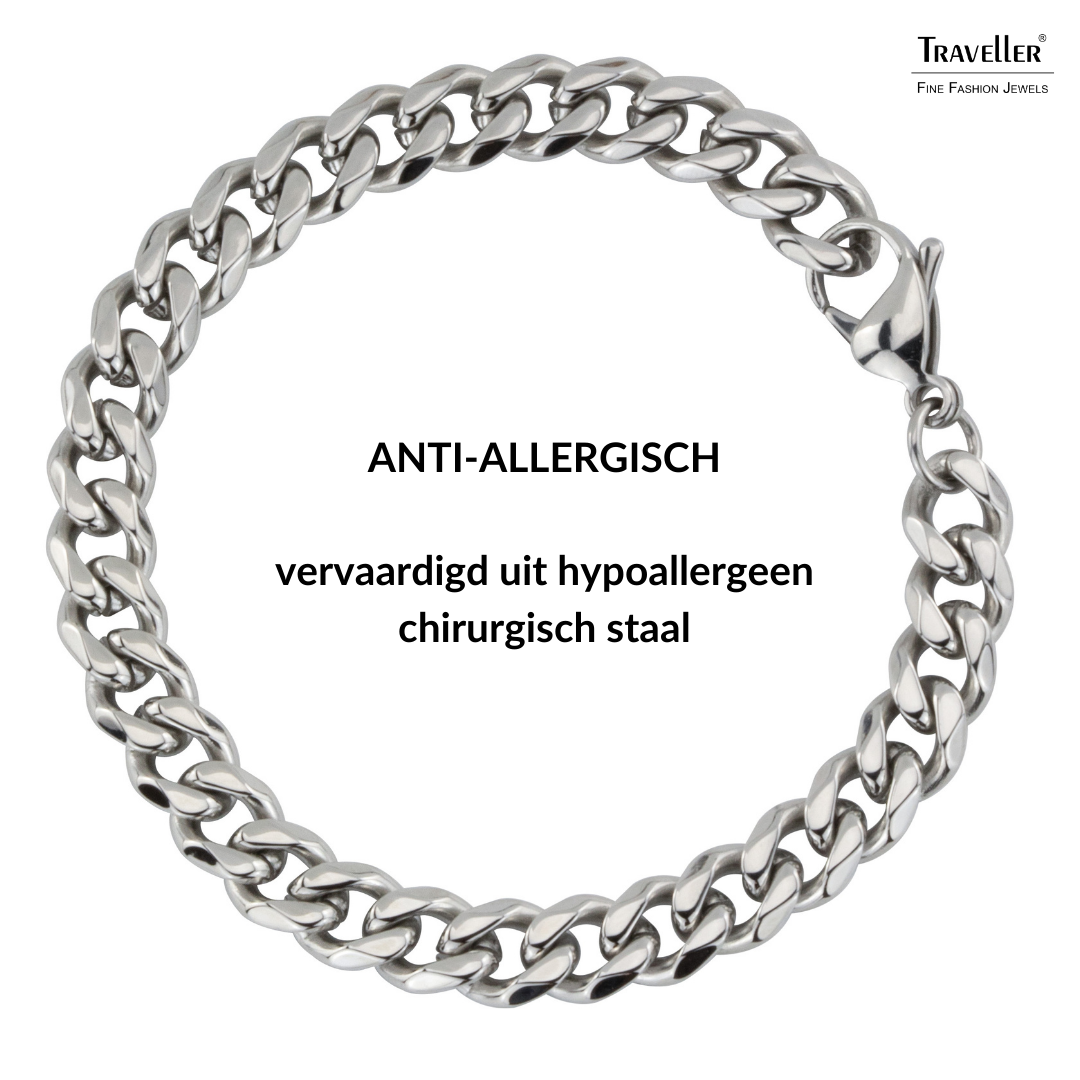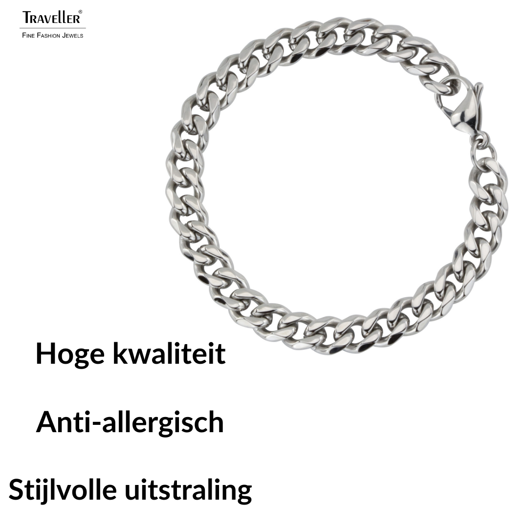 Deze armband maakt iedere outfit compleet op de meest chique manier. De zilverkleurige, edelstalen schakelarmband is 22 centimeter lang en heeft een tijdloos, elegant design. De armband weegt 26 gram. Maak het helemaal compleet met de bijpassende ketting.