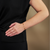 Deze elegante bangle van Traveller kenmerkt zich door zijn glanzende zirconia, open design en opvallend lichte gewicht. De goudkleurige bangle weegt slechts 4,4 gram en is buigbaar, waardoor hij soepel om je pols glijdt en daar prettig aanvoelt. Dit comfort en de prachtige zirconia maken deze bangle de perfecte accessoire voor de feestdagen, een unieke look of geluksmomentje voor jezelf. De cirkels op de uiteinden hebben een diameter van 1 centimeter.