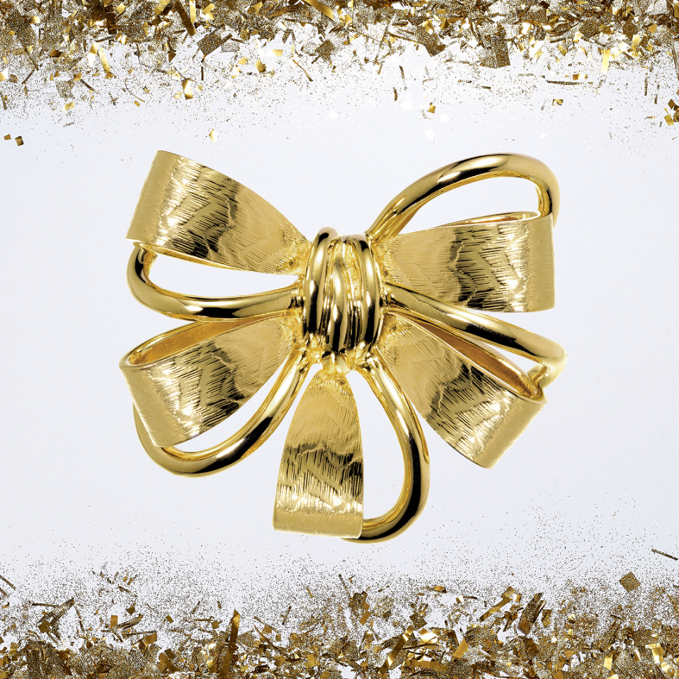 Grossé's lijn "jubileum" is een mooi gedetailleerde lijn met een feestelement: de strik. Deze goudkleurige, volledig vergulde, broche in de vorm van een strik is een mooie toevoeging op elke outfit. De broche is 3,5 bij 4,2 centimeter groot en weegt 22 gram.