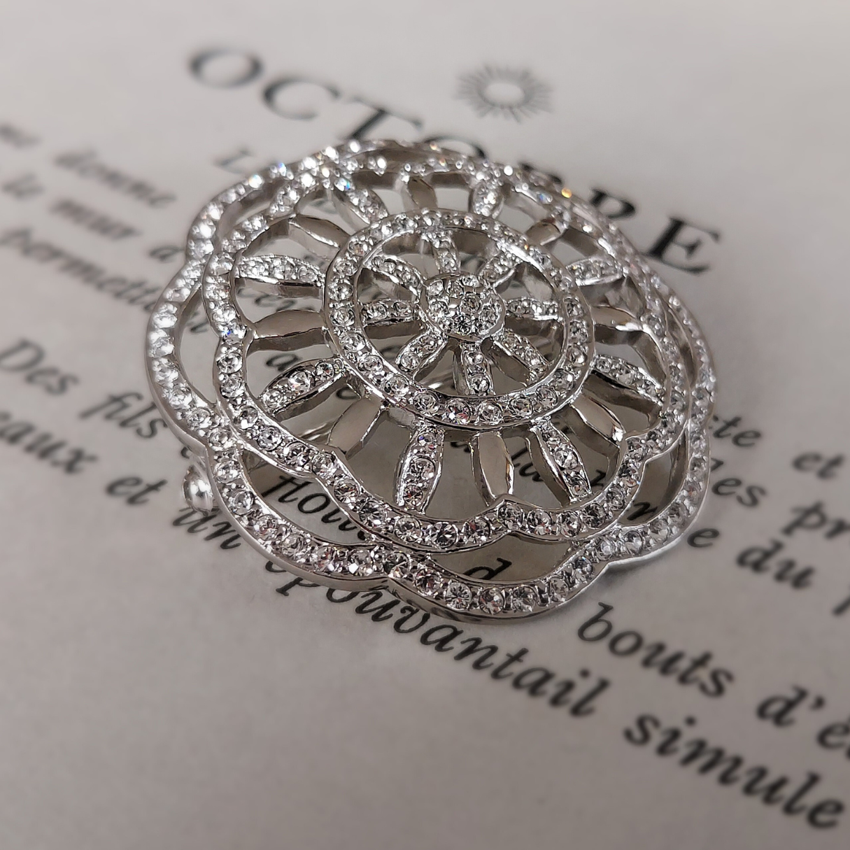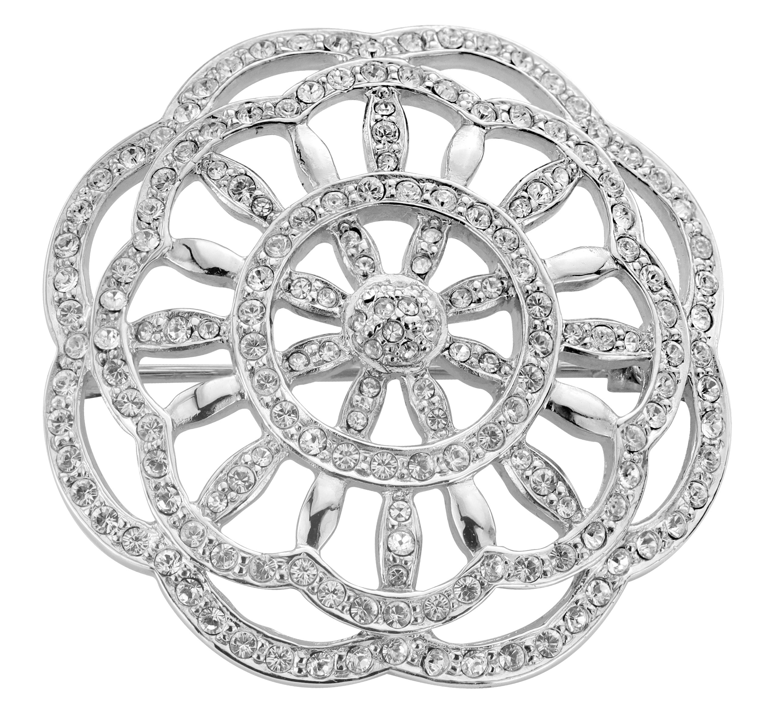 Traveller Broche Dames - Zilverkleurig - Bloem - Preciosa kristallen