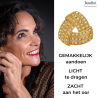 Wat een eyecatchers zijn deze schitterende oorbellen van Traveller! De goudkleurige oorclips zijn geheel verguld met 22 karaat goud en ze hebben de vorm van een driehoek. De driehoek is bezaaid met kristallen van Preciosa en heeft een klein open stuk in het midden. De oorclips hebben een afmeting van 15 bij 15 millimeter en wegen per stuk 3,2 gram. Dankzij het unieke sluitingssysteem van Traveller zijn deze oorclips zeer comfortabel, licht en veilig om te dragen.