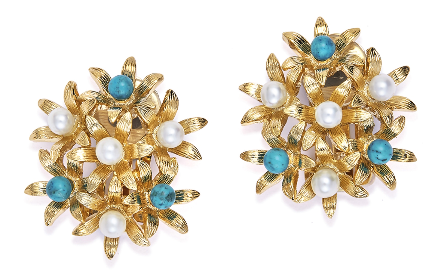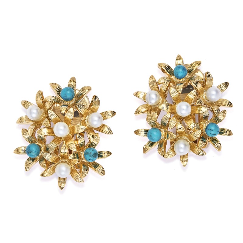 Grossé Floraison - Oorclips - Goudkleurig - Parels - Turquoise